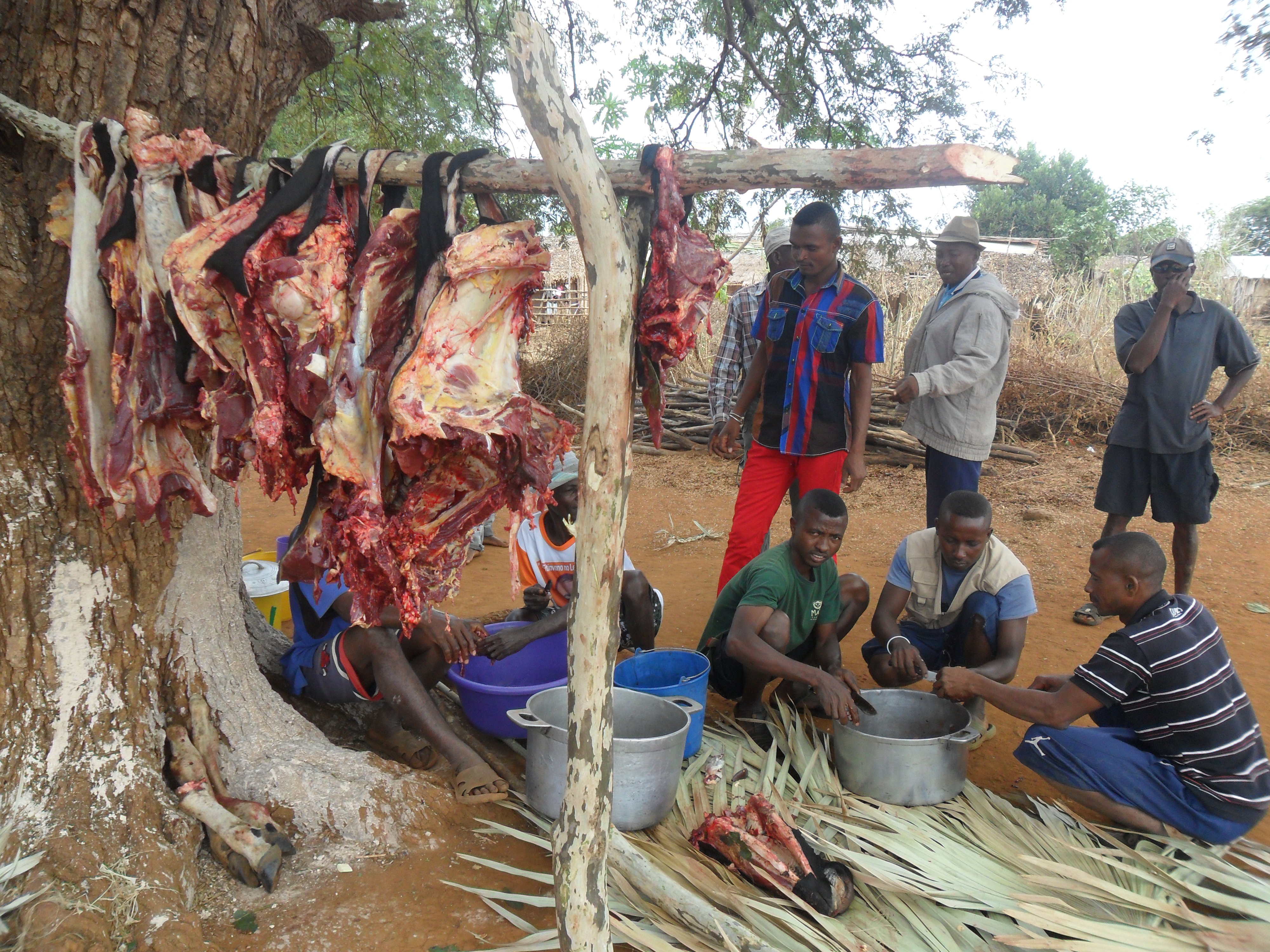 Comme partout à Madagascar, un ou plusieurs zébus sont sacrifiés et la viande constitue le principal mets qui accompagne le riz pendant ces rejouissances dans cette partie septentrionale de Madagascar. Les fêtes se déroulent en toute simplicité mais dans la joie et l’allégresse.