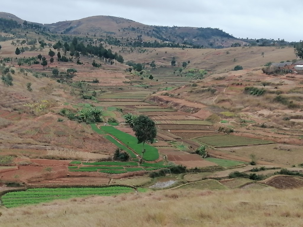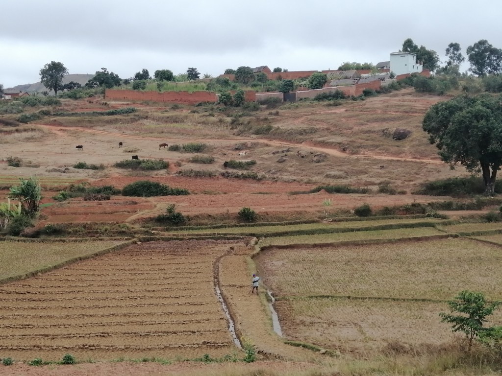 Après Antsahamarofoza, la route en terre traverse des paysages ruraux composés de zones boisées, de champs de culture et de cours d’eau. Selon la saison, vous verrez ainsi sur les champs soit du riz, soit des ciboulettes ou d’autres types de produits agricoles.