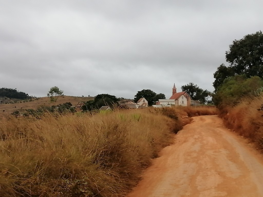 Après Ambohidrano Andrefana, la route en pavé continue encore jusqu’à environ deux kilomètres. Sur le chemin, l’on voit de loin le village d’Antsahamarofoza. Puis, la randonnée se poursuit sur une route en terre en passant d’abord sur une zone boisée de pins, puis devant la maison « Tranom-bitsika » (littéralement Fourmilière). C’est ainsi qu’est baptisé le village des scouts « Tily eto Madagasikara ».