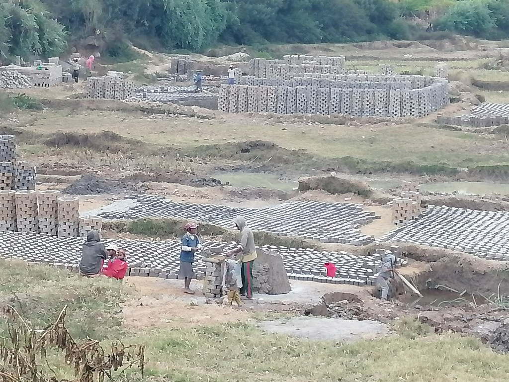 Vous commencerez ensuite votre marche en direction d’Ambatofotsy Avaradrano. Mais au lieu de continuer vers Manandriana Avaradrano, vous prenez la route qui mène vers Ambohidrano Andrefana. La route commence par une descente en pente raide jusqu’au niveau d’un pont, sur lequel vous verrez de part et d’autre, de vastes zones de fabrication artisanale de briques.