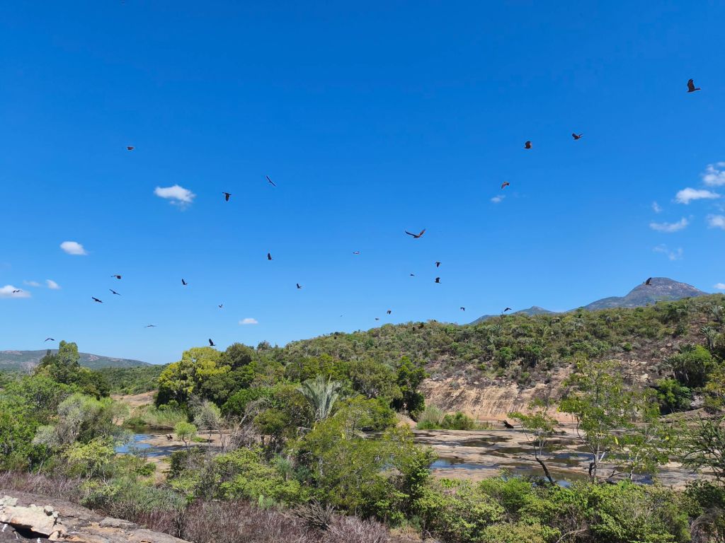 En levant la tête, vous serez peut-être surpris, tout comme moi, par le vol d’une centaine d’oiseaux rapaces chassant au-dessus de l’eau.
